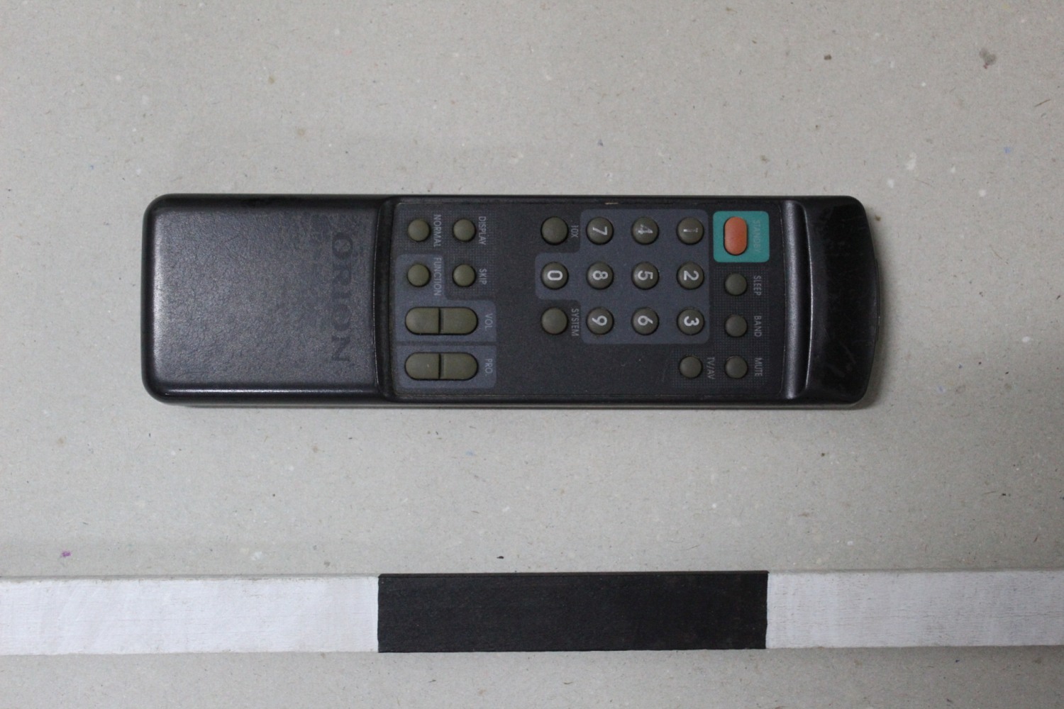 8. Fernbedienung. Schwarze TV-Fernbedienung.