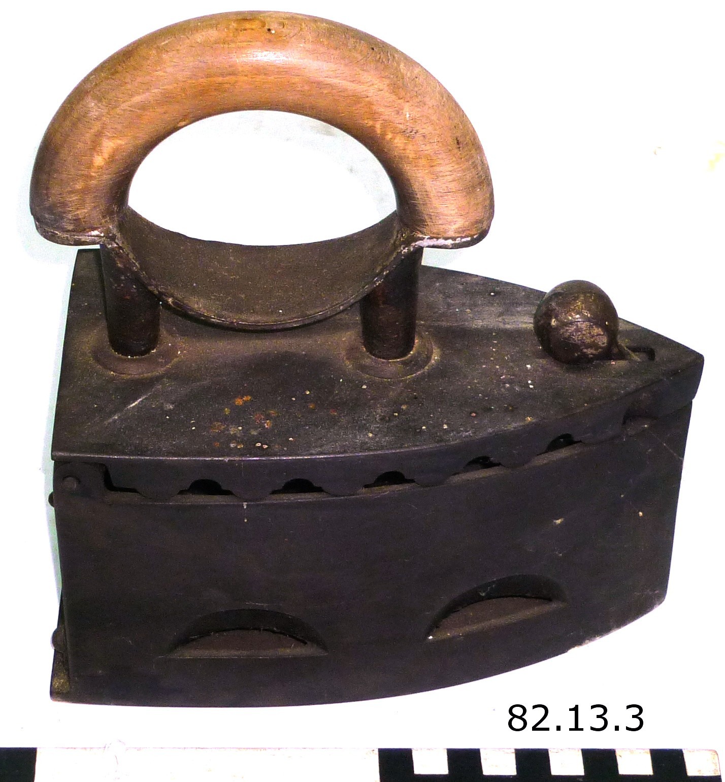 22. Charcoal-iron. The factory made clothes were ironed using an iron heated with the help of ambers or charcoal. The object can be opened up, the hot embers were placed in and in turn that heated the iron plate at the bottom.