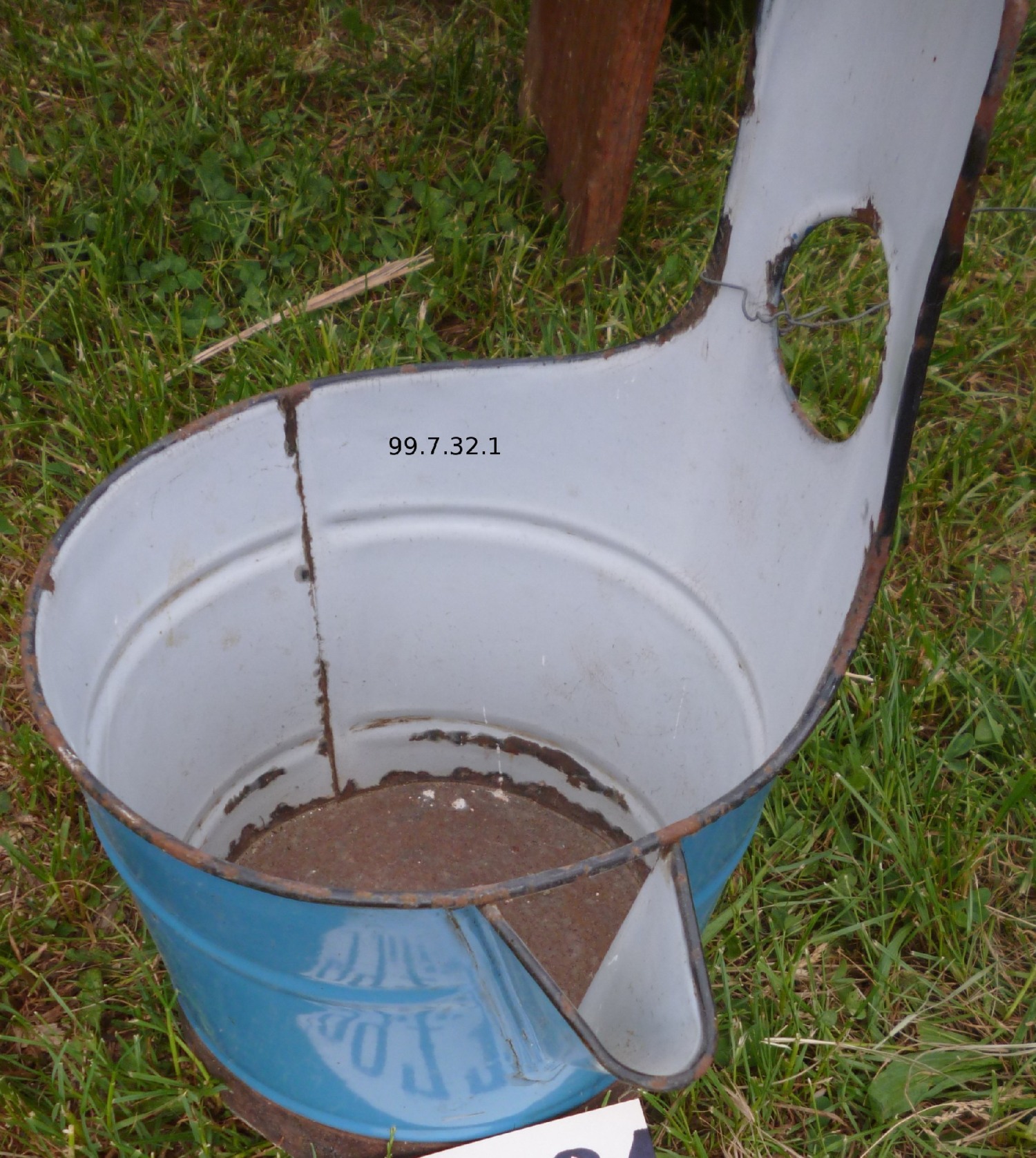 24.   Milk-pail. Milking the cows was almost exclusively female work, done into a pail set on the floor with both hands while sitting on the milking stool.