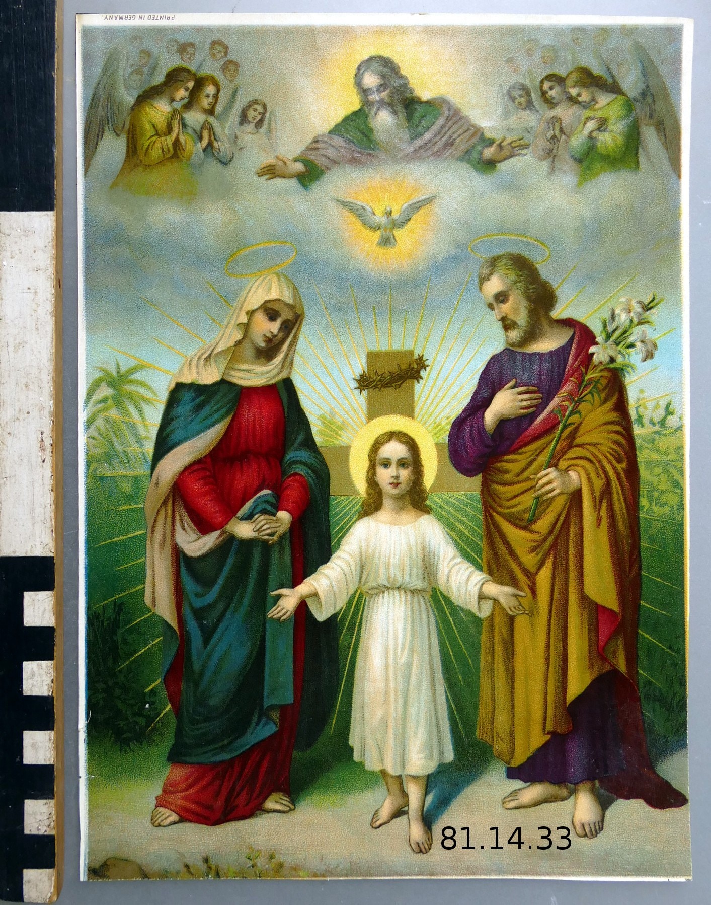 19. Holy picture. A picture of the Holy Family, above them the Father and in the shape of dove the Holy Spirit and angles. It served to strengthen to close relationships within the family.