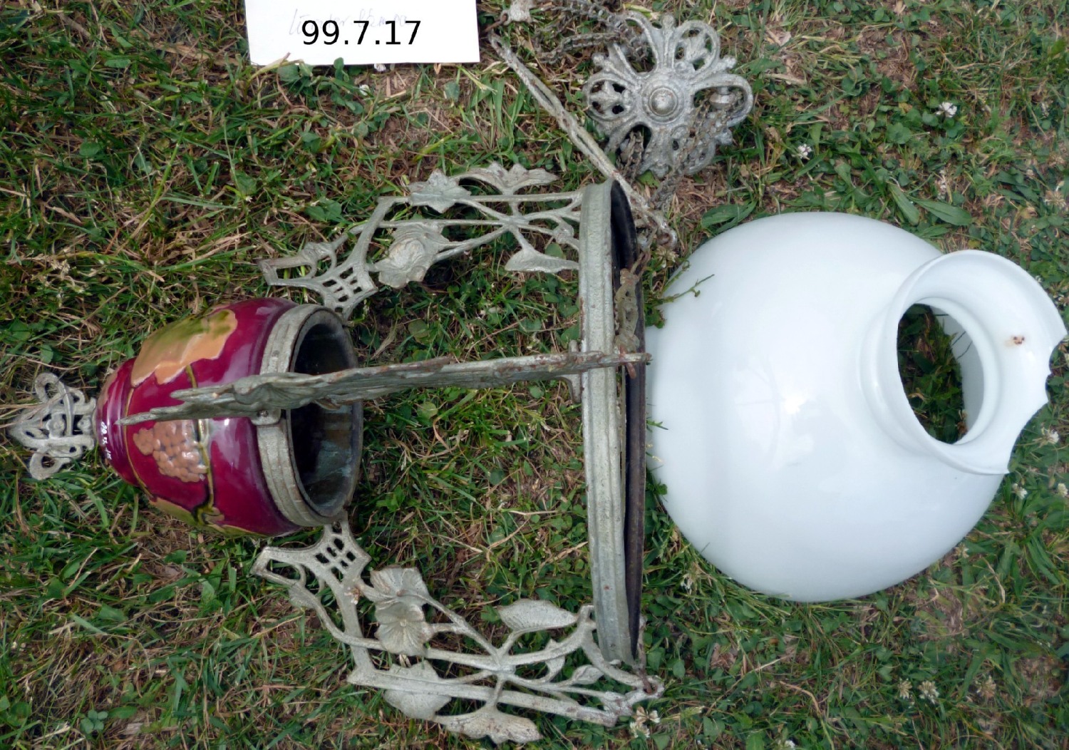 35. “Lüszter” lamp. This type of lamp origially used in civic homes in the town got installed in the guest- and living rooms. It bears historic ornaments. The word “lüszter” comes from the metallic shine of the porcelain part.