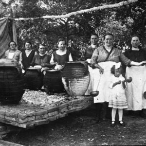 Women cook for weddings in Szentgál. Aurél Vajkai’s reproduction of a recording probably from the end of the 19th century. Dezső Laczkó Museum, Photographs of source value. N.3697.