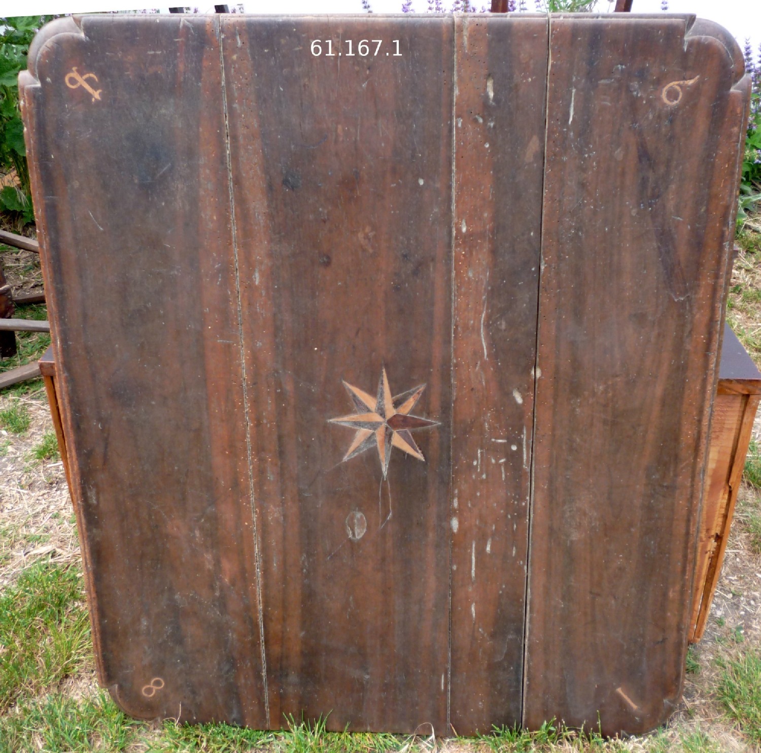 6.   Asztal. Faberakással és intarziával díszített polgári hatást tükröző asztal. A faberakás esetén a minta helyét kivésték, abba került bele az eltérő színű faanyag, míg az intarziánál egymás fölé helyezett falapokkal érték el a kívánt hatást. Az asztal fiókját úgy képezték ki, hogy benne elférjen az akár három kilós megszegett kenyér is.