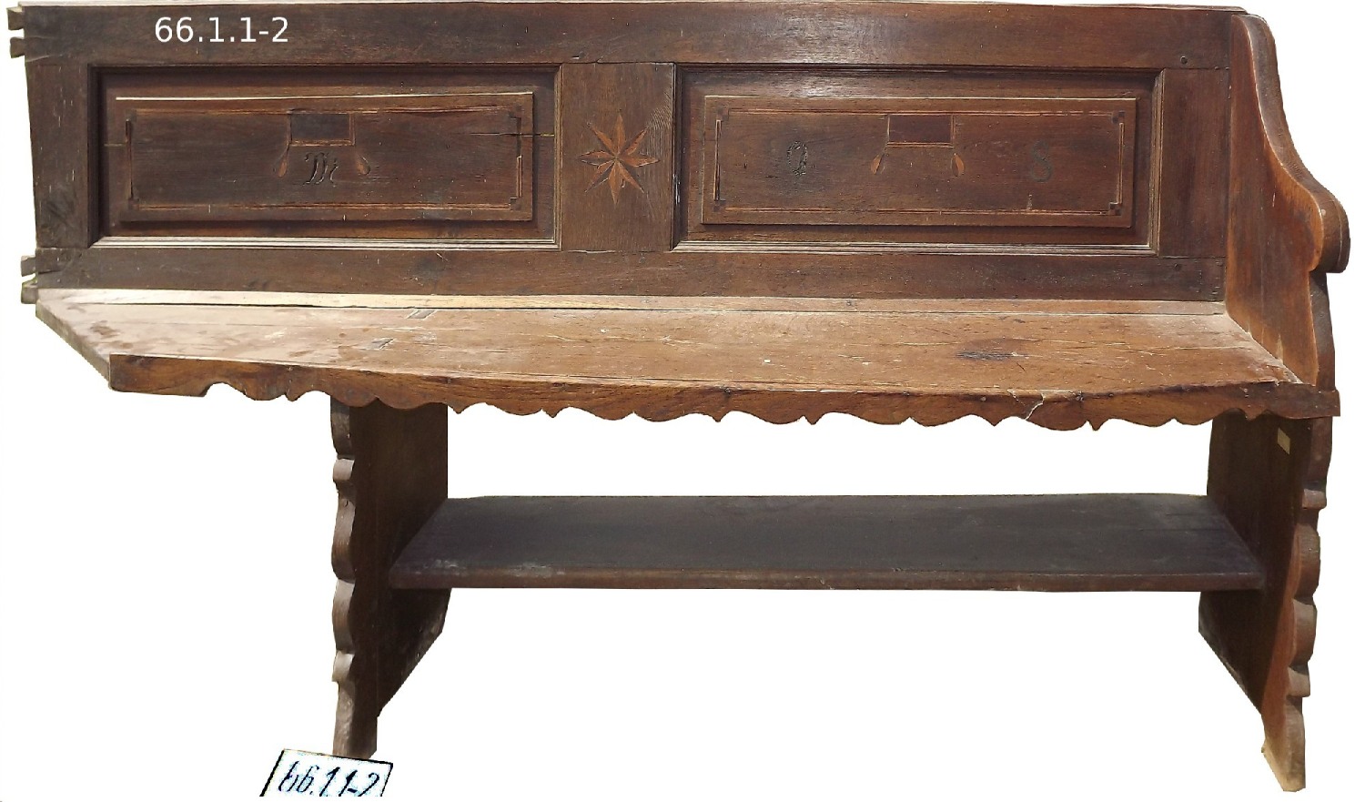 7. Sarokpad. Faberakással díszített asztalosmunkák. A faberakásnál a minta helyét kivésték, abba került bele az eltérő színű faanyag, míg az intarziánál egymás fölé helyezett falapokkal érték el a kívánt hatást. Az asztal fiókját úgy képezték ki, hogy benne elférjen az akár három kilós megszegett kenyér is. Az asztal a körülötte lévő sarokpaddal a ház központi részét alkotta. Főként ünnepi alkalmakkor itt étkezett a család, az asztalra állították fel a karácsonyfát, valamint a céhgyűlés is e körül zajlott.